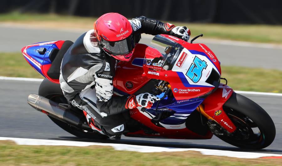 In the Pirelli National Superstock series, the Honda Fireblade continues its strong early season form as eight ‘Blades’ occupied positions within the top ten. Dan Linfoot fired his Optimum Bikes Racing Fireblade to pole position in a blisteringly quick 1:48.948.