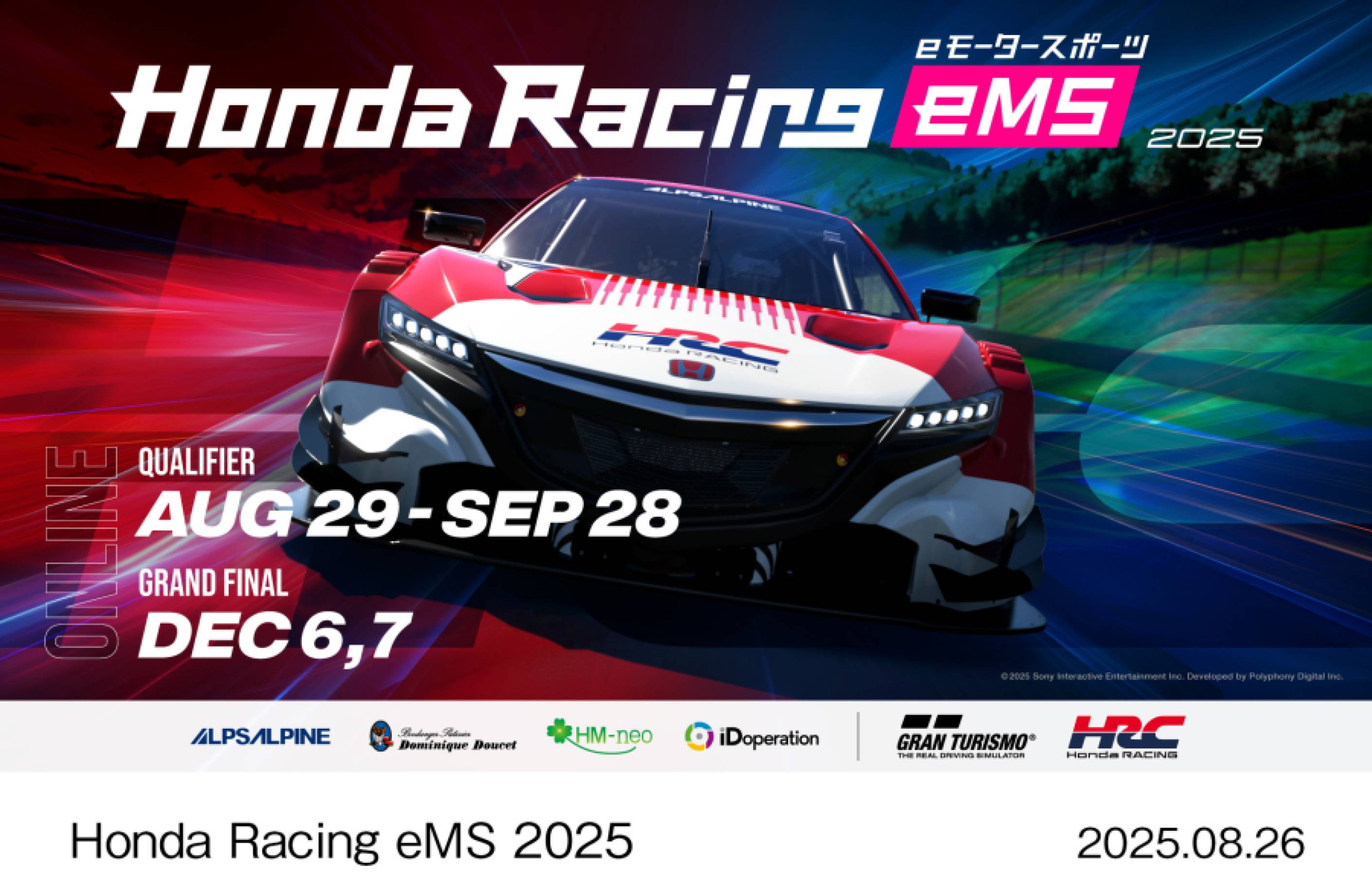 Honda Racing Corporation (HRC) today announced that it will hold its official e-motorsports event, Honda Racing eMS 2025, using Gran Turismo 7 (published by Sony Interactive Entertainment Inc.) for PlayStation®5 (PS5®) and PlayStation®4 (PS4®)