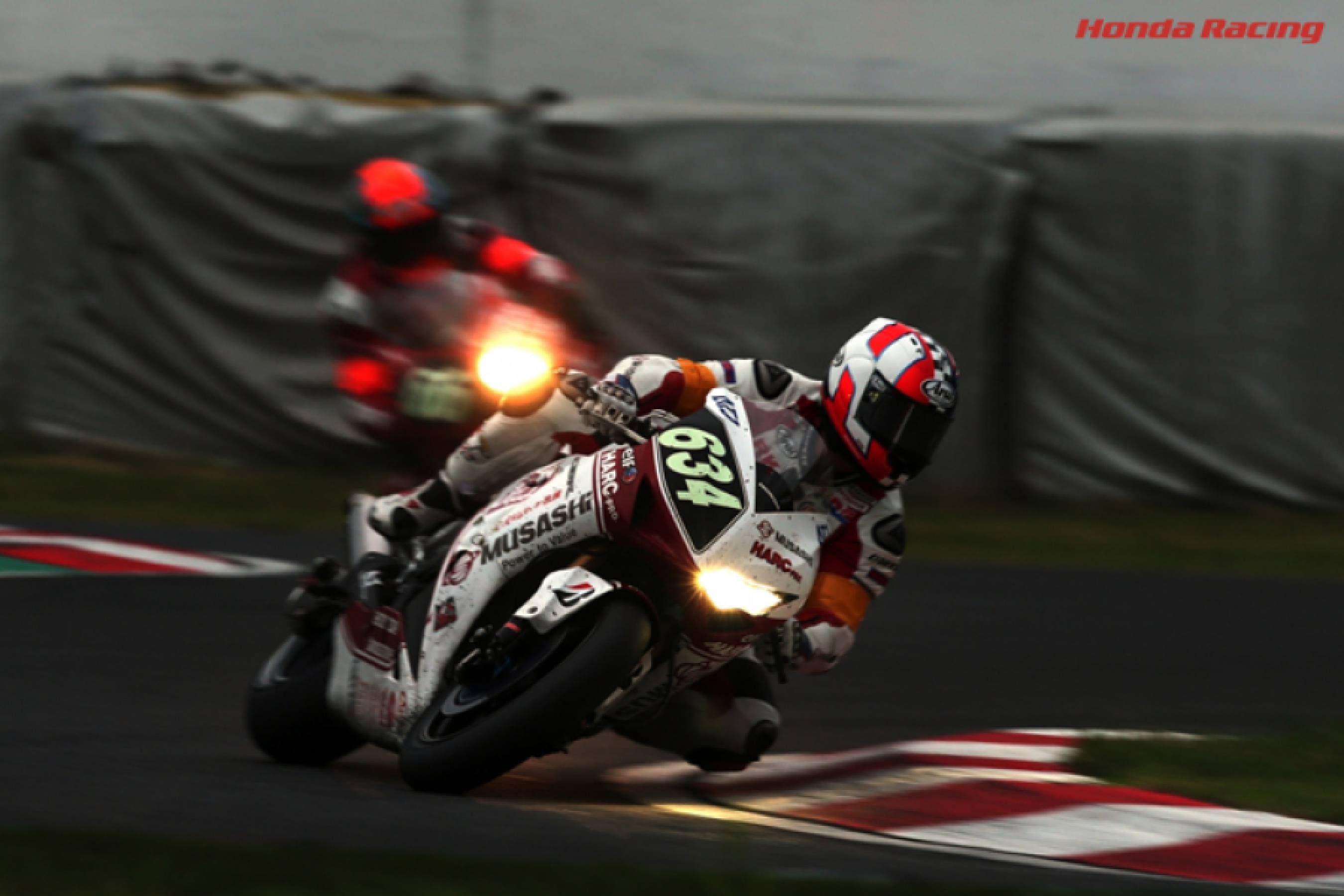 In the early stages, Takumi Takahashi / Leon Haslam / Michael van der Mark (CBR1000RR) had led the race, but was soon caught by Jonathan Rea / Ryuichi Kiyonari (CBR1000RR). Kiyonari crashed, giving Takumi Takahashi / Leon Haslam / Michael van der Mark a comfortable lead. Rain started falling at 7pm, but Takahashi stayed on slick tires, marking the CBR1000RR‘s fourth consecutive win. Takuya Tsuda / Nobuatsu Aoki / Josh Brookes (Suzuki) was second, and Yukio Kagayama / Kevin Schwantz / Noriyuki Haga (Suzuki) was third.