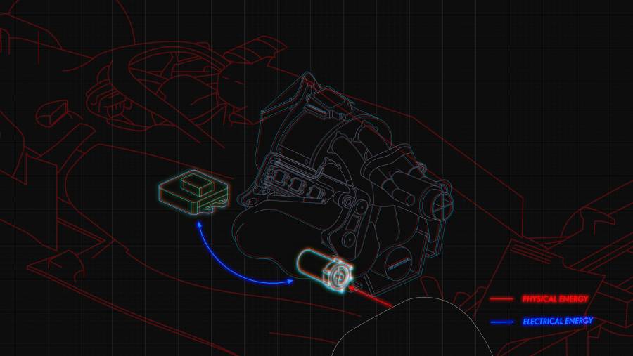 ブレーキングや排気の熱によって生み出された電気エネルギーは、現代のF1マシンにとって不可欠な動力源です。これらの回生エネルギーをマシン内部に貯めておき、必要に応じてMGU-K内部のモーターを通じて駆動力を向上させます。ちなみに、ESからMGU-Kへのエネルギー転送量は、1ラップあたり4MJに制限されています。