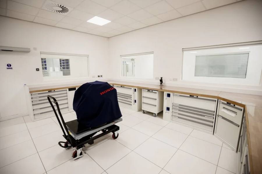 僕自身には、2017年3月に英国のHRD-UKへの駐在という辞令がおります。駐在開始後の担当業務は、Sakuraでの内容と同じくベンチテストの仕事でした。違いとしては、Sakuraでは将来的に投入するPUの開発をしていたのに対し、HRD-UKでは、レースで使用される仕様のPUをギアボックスと繋ぎ、実際のレースでのセッティングやスタート時のローンチ(ギアをつないで車輪を動かし始める動作)テストなど、よりレースに近い状況での開発をする仕事でした。