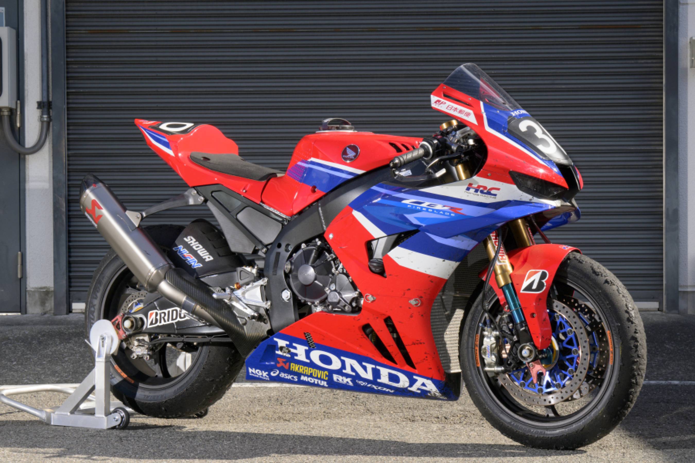 フレームは、スーパーバイク全般ではガセットやチューブで補強できる(逆に取り去ることは不可)。フレーム補強はもちろん行っていて、高橋 巧選手たちが全日本で使用するフレームとは別物の、BSタイヤの剛性に対応した8耐専用となっている。ちなみに、全日本にはHRCファクトリーは参戦していないので、CBR勢は原則的にHRCキット車での参戦となっている。