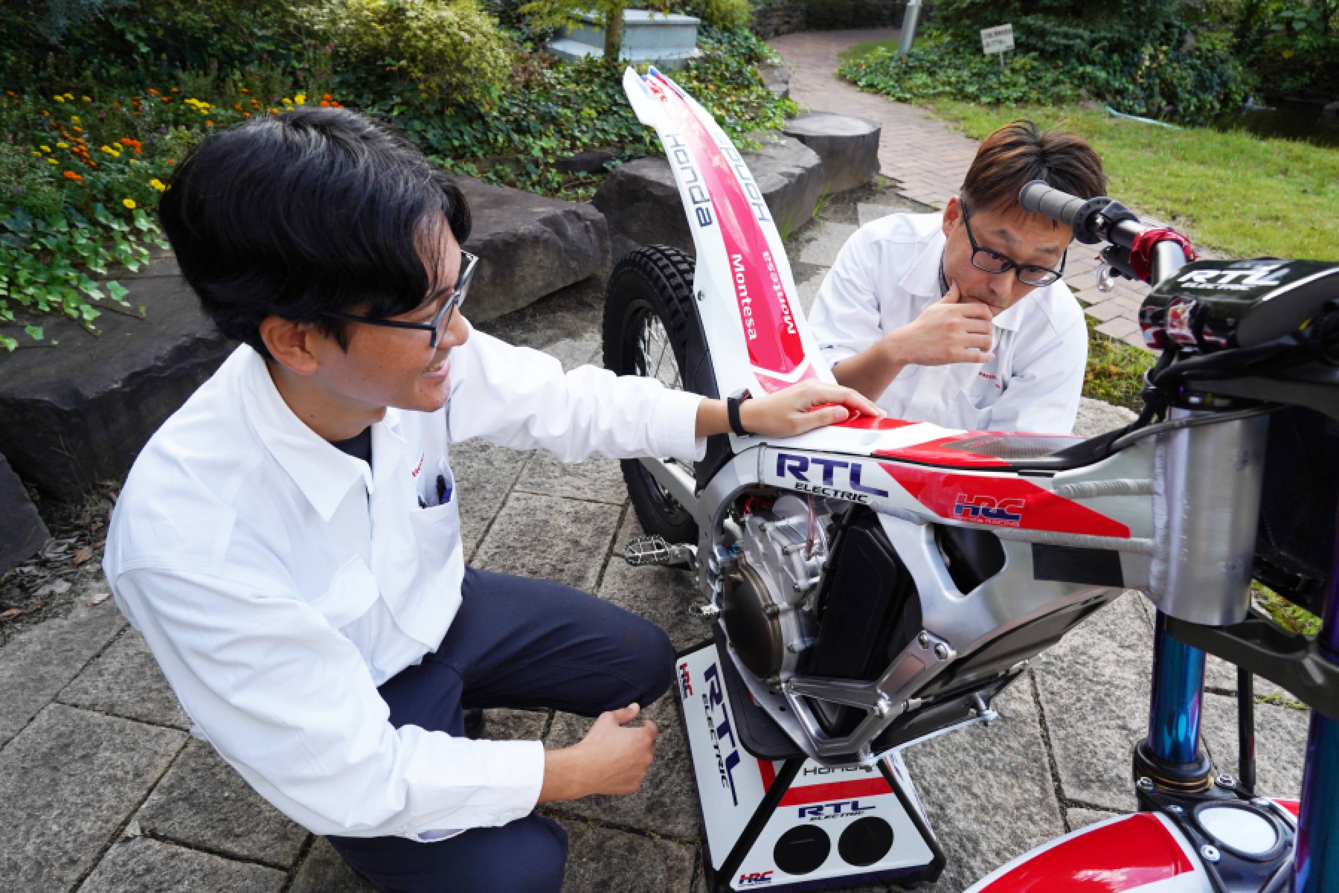 Honda RTL ELECTRICの開発について、二輪・パワープロダクツ電動事業開発統括部の秋吉洋行と深尾祐介に話を聞いた。両者は、2024年に藤波貴久がHonda RTL ELECTRICでJTR3連勝を成し遂げた当時から現場を支えてきた。