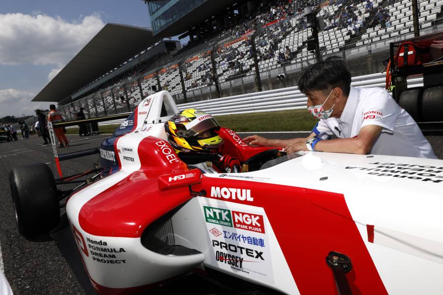 今シーズン、ホンダ・フォーミュラ・ドリームプロジェクト(HFDP)からFIA-F4日本選手権シリーズに参戦したルーキーの西村和真は、デビュー戦となるシリーズ第1大会(第1戦/第2戦)が始まると、一躍脚光を浴びることとなった。というのも、第1戦の公式予選A組で出走20台中ベストタイムを記録し、決勝レースのスターティンググリッド最前列に並ぶことになったからだ。