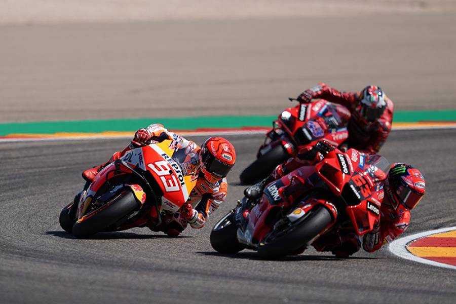 第13戦アラゴンGPは、今季ベストグリッドとなる予選4番手から好スタートを切ったマルク・マルケスが、ポールポジションスタートのフランチェスコ・バニャイア(ドゥカティ)と一騎打ちを繰り広げ、2位になりました。優勝は逃しましたが、ケガから復帰して初めてドライコンディションで優勝争いに加わるすばらしいレースでした。