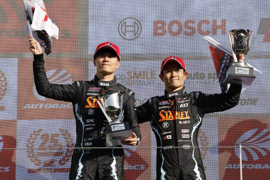 迎えた決勝、100号車 STANLEY NSX-GTは序盤に順位を落としながらも、終盤まで実質5番手の位置をキープ。表彰台争いに加わっていたが、争いの中で前方を走っていた23号車 MOTUL AUTECH Zが大きなクラッシュに見舞われてしまう。レースはその時点で赤旗が掲示され、そのまま終了。最終的に100号車STANLEY NSX-GTの順位は5位となった。