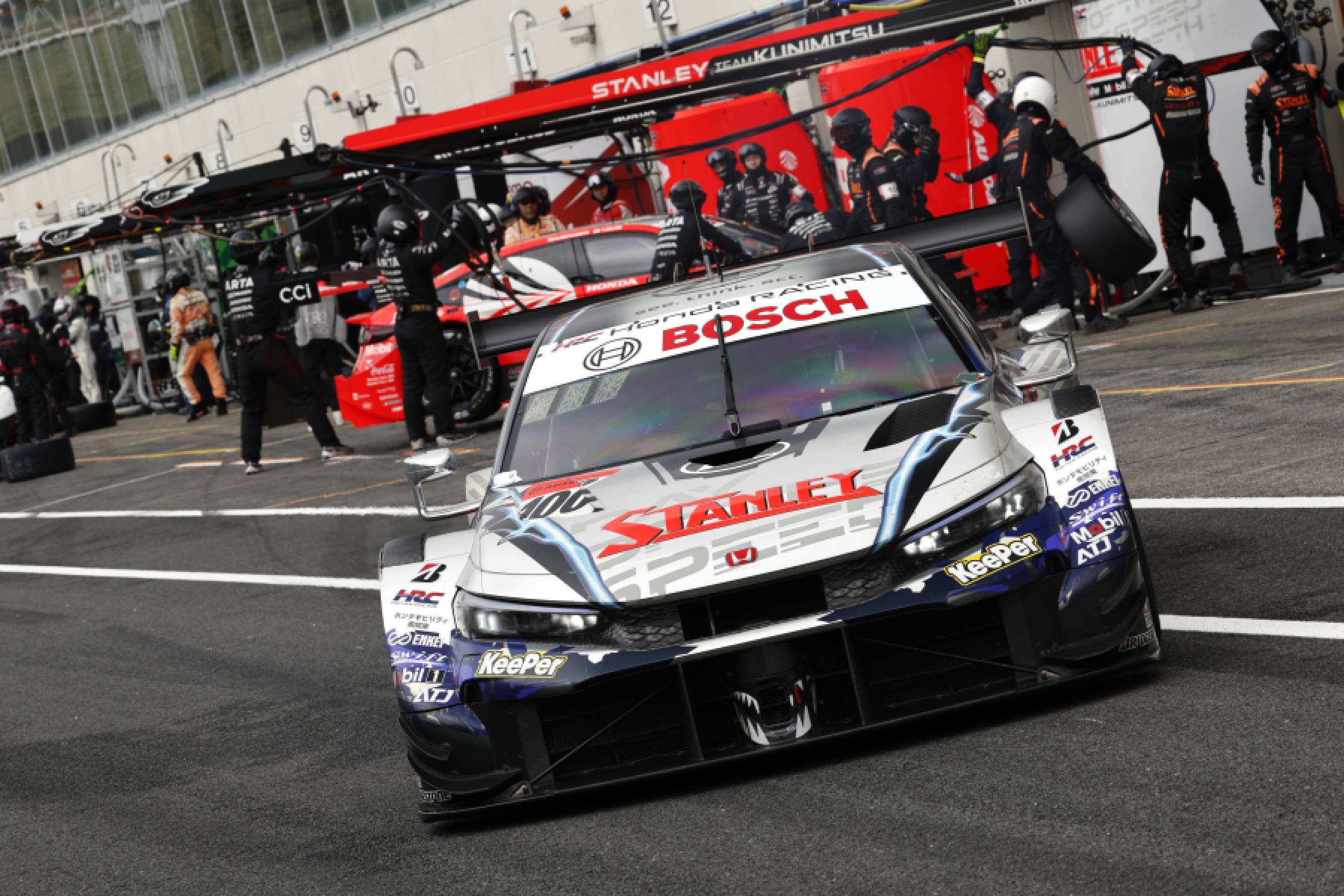 Honda RACINGはCIVIC TYPE Rをベースとした競技車両『CIVIC TYPE R-GT』を新たに開発し、2024年シーズンに投入しました。しかし『車高を5mm高めること』と規則が改められ、新型車両もこれに適合させる必要があったため、開幕に向けた車両熟成はそう簡単には進みませんでした。それでも4月の開幕戦で100号車 STANLEY CIVIC TYPE R-GT(山本尚貴/牧野任祐)、第2戦で17号車 Astemo CIVIC TYPE R-GT(塚越広大/太田格之進)、第3戦で16号車 ARTA MUGEN CIVIC TYPE R-GT(大津弘樹/佐藤蓮)が続けて3位に入賞します。第4戦では公式予選で1〜3番手をCIVIC TYPE R-GTが占め、8号車 ARTA MUGEN CIVIC TYPE R-GT(野尻智紀/松下信治)がこの新型車両で初めての優勝を遂げて順調にラウンドを重ねていきます。
