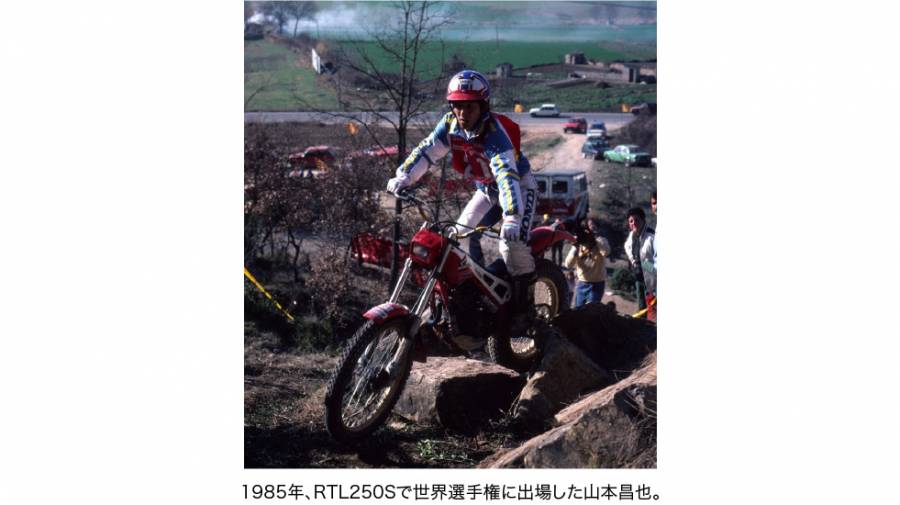一方、山本昌也は1984年のトライアル世界選手権・終盤戦に、発売前のRTL250Sでスポット参戦。当時は、まだツインショックのマシンも多く、ツインショックからモノショックへと移行する過渡期にあった。そこで、RTL250Sから導入されたHonda先進のプロリンクは、山本の卓越したライディングとも相まって、初参戦ながら6位という好成績で、デビュー戦から世界に衝撃を与えたのだった。