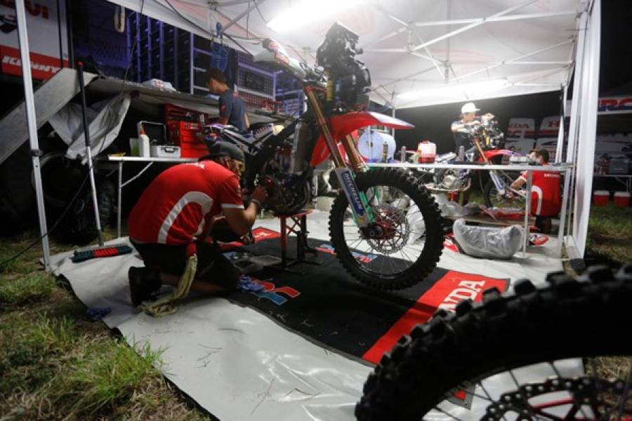 メMechanics and team staff are not allowed to enter the route. Once the rider is on the route, all the mechanics can do is wait at the bivouac for their riders to return. The rest is up to the riders. If there is an accident, the final decision on rescuing a rider is made by the organizers, not by the riders or mechanics. If a bike breaks down, the rider is rescued by helicopter and the bike is recovered by the organizers. The bikes are either pulled by trucks equipped with cranes, or by helicopter if they are stuck in places where trucks cannot enter. In fact, former HRC rider Joan Barreda was transported by helicopter when he retired in 2017 due to injury.