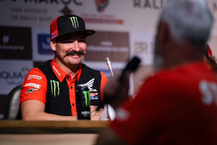 Signed up to the Monster Energy Honda Team in time for the Rallye Du Maroc 2023, it didn’t quite go to plan for him so we caught up with the man with the most famous ‘tache in the bivouac and yes, we did find out where the inspiration came for it!