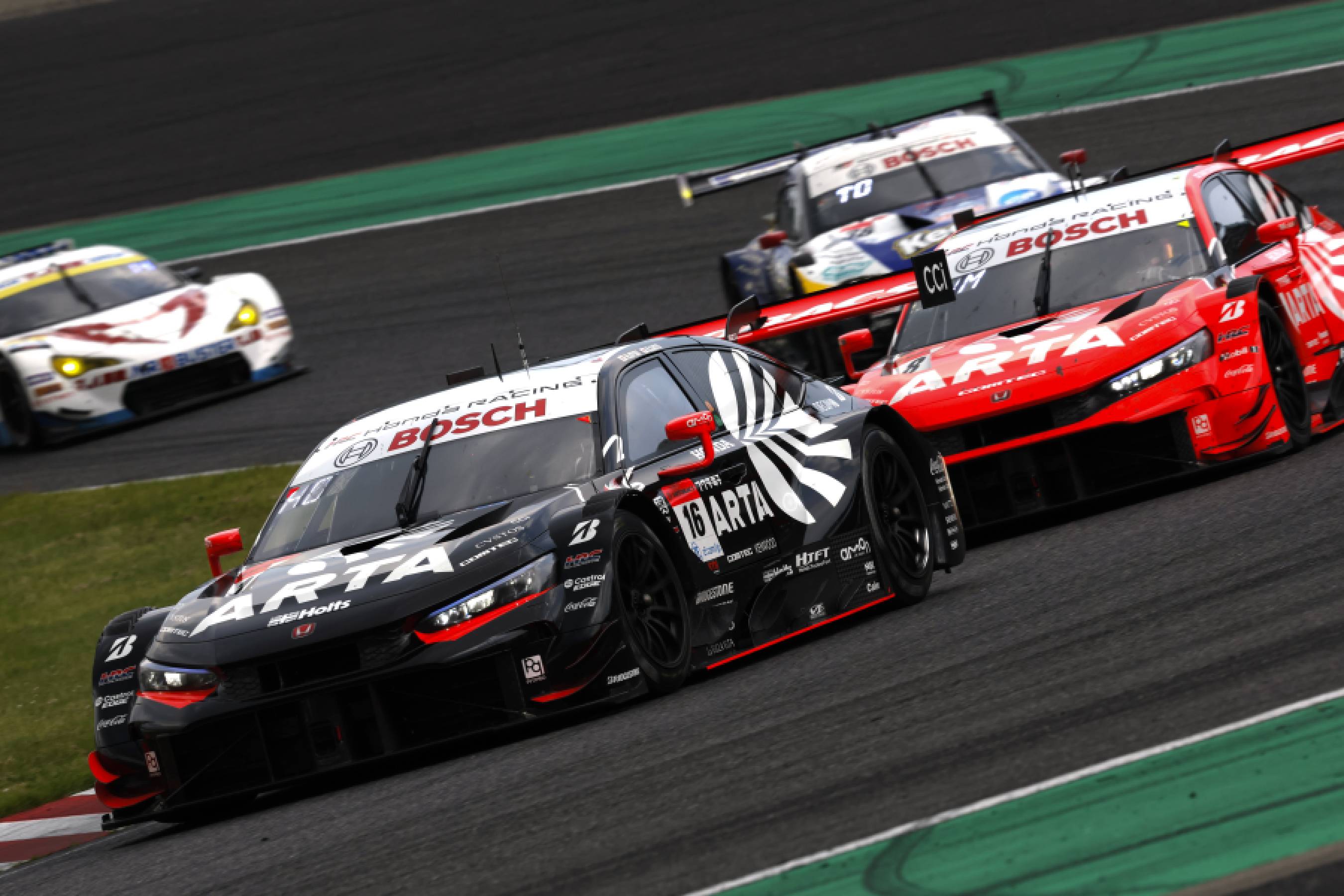 The 3rd round (at Suzuka Circuit) was another 3-hour race as same as the previous one. The #17 car that achieved a podium finish at Fuji run fast right from the Q1 session but made a spin in Q2. Instead, #16 ARTA MUGEN CIVIC TYPE R-GT (Hiroki Otsu/Ren Sato) came in 2nd and #8 in 4th making up for the mishap.