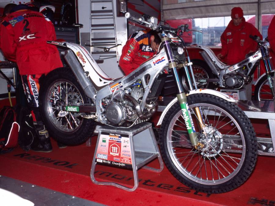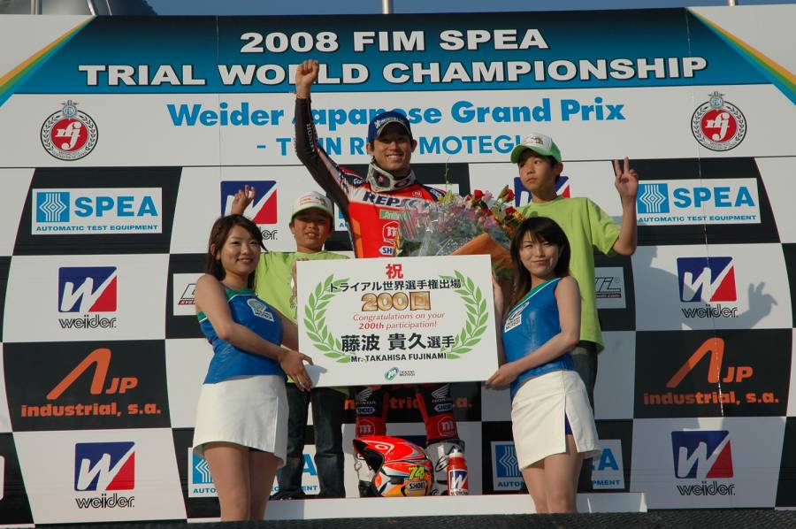 In 2005, not only did Fujinami’s bike number change to No. 1, but he would compete on the brand new COTA4RT (Honda RTL250F), just released to the market. The global movement towards cleaning up exhaust fumes led to trial bikes moving from 2- to 4-stroke engines. Leading the trend in the world championship were the three Repsol Honda Team riders, Takahisa Fujinami, Dougie Lampkin and Marc Freixa, on their all-new 4-stroke bikes.